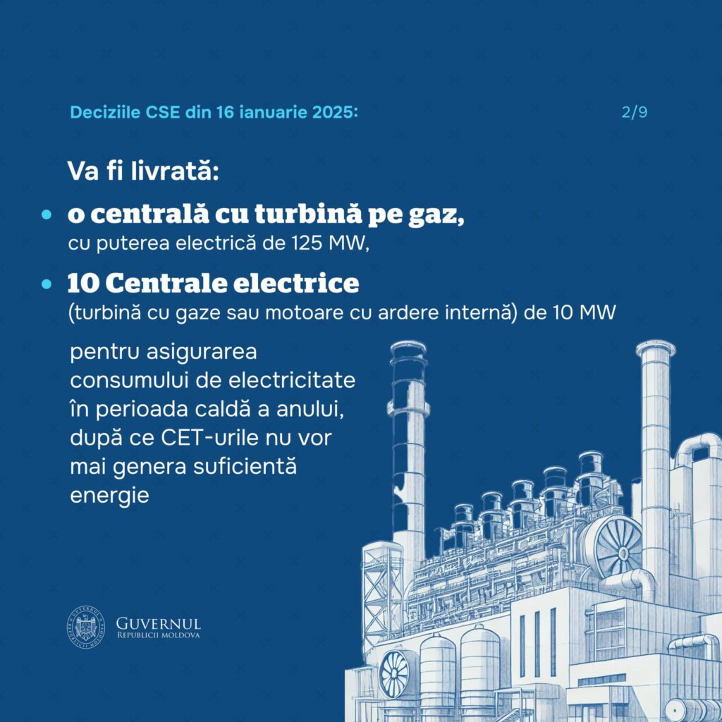 For the first time, the European Union Civil Protection Mechanism will be activated to assist Moldova, bringing the EU closer to the Moldovan citizens. Through this mechanism, Moldova will request international assistance to install a 125 MW gas turbine at Termoelectrica S.A. and ten 10 MW turbines at Termoelectrica S.A. and CET-Nord S.A. Additionally, a request will be made related to the purchase of 100 generators for medical, social and educational institutions in the Security Zone.