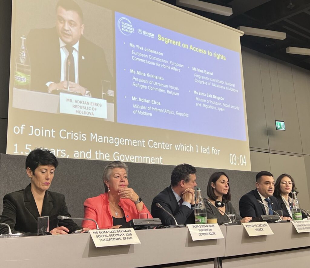 Moldova has assumed nine new commitments with a focus on refugee integration, children’s rights, gender equality, education, and the reduction of statelessness. These objectives were outlined during the Global Forum for Refugees 2023 attended by the Minister of Internal Affairs, Adrian Efros, and the Minister of Labor and Social Protection, Alexei Buzu.